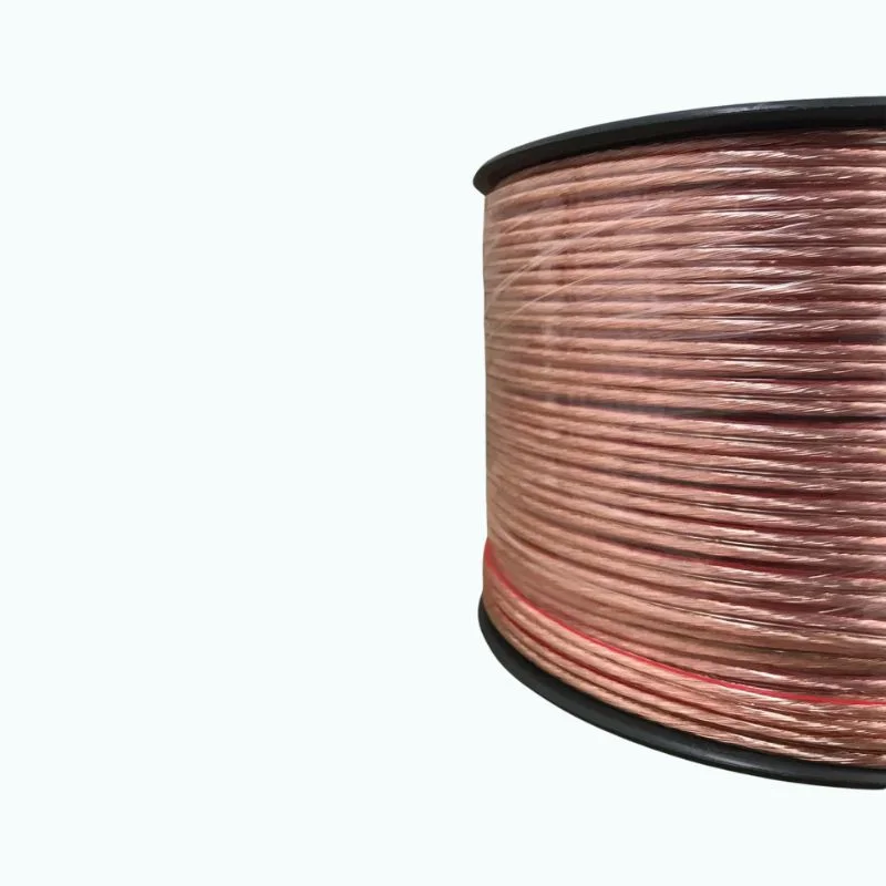 Designed with a transparent PVC jacket and a red polarity trace line, this speaker cable ensures quick and accurate connections. The clearly marked polarity reduces the risk of errors during installation, guaranteeing optimal sound performance. Its durable outer jacket protects the internal conductor, ensuring long-lasting reliability for both residential and commercial applications.