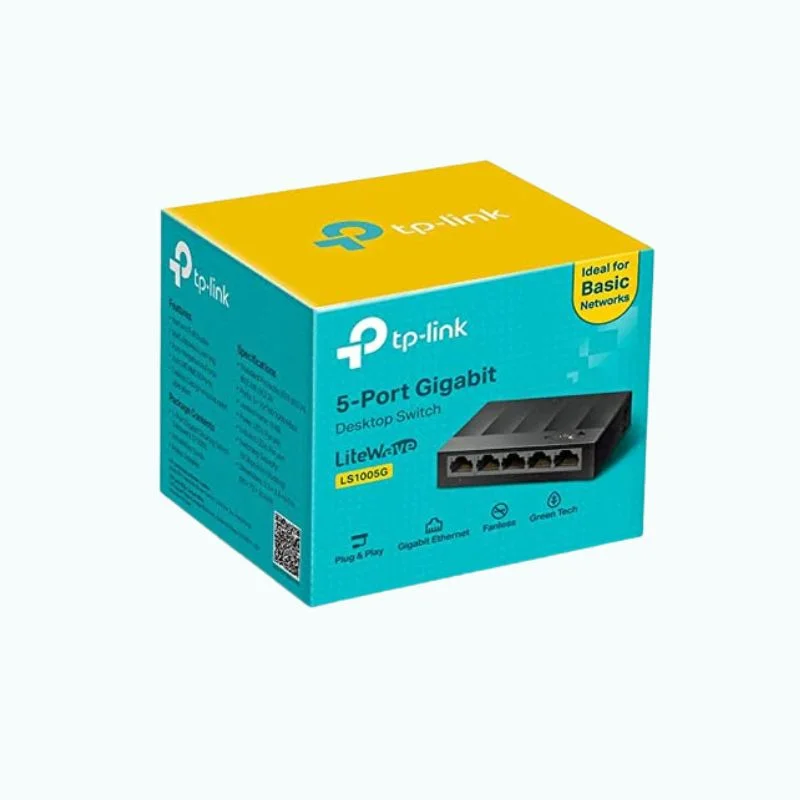 The TP-Link LiteWave LS1005 is a 5-port 10/100Mbps desktop Ethernet switch designed for simple and efficient networking. Its compact and durable design fits seamlessly into any environment, making it ideal for homes, small offices, and personal setups. For users looking for a reliable option to enhance their network performance, the TP-Link unmanaged Gigabit desktop switch is a great addition to ensure smooth connectivity and stable data transfer across multiple devices.